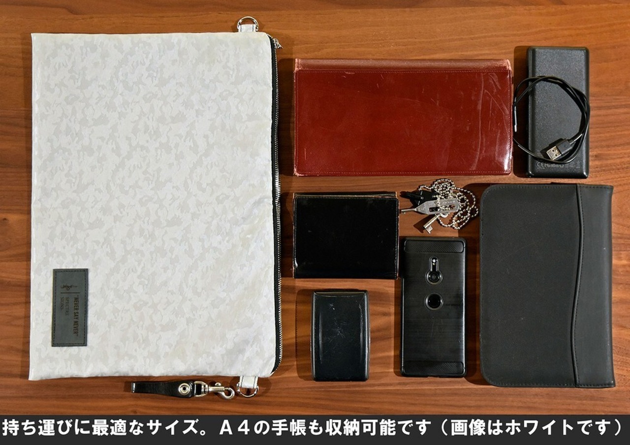 ちょっとした外出に便利なバッグです。内部はメインの他にポケットが2つ。両サイドにDカンがついているのでストラップを付ければショルダーバッグとしても使えます。ファスナーの引手もOリングになっているのでお好みのチャームを付けてお楽しみいただけます。カラーは3種類。気分や服装に合わせてお使いください。カモ柄の織りなので光の感じで見え方が違います。ブランド:SPECTRE SIGNS GEAR
