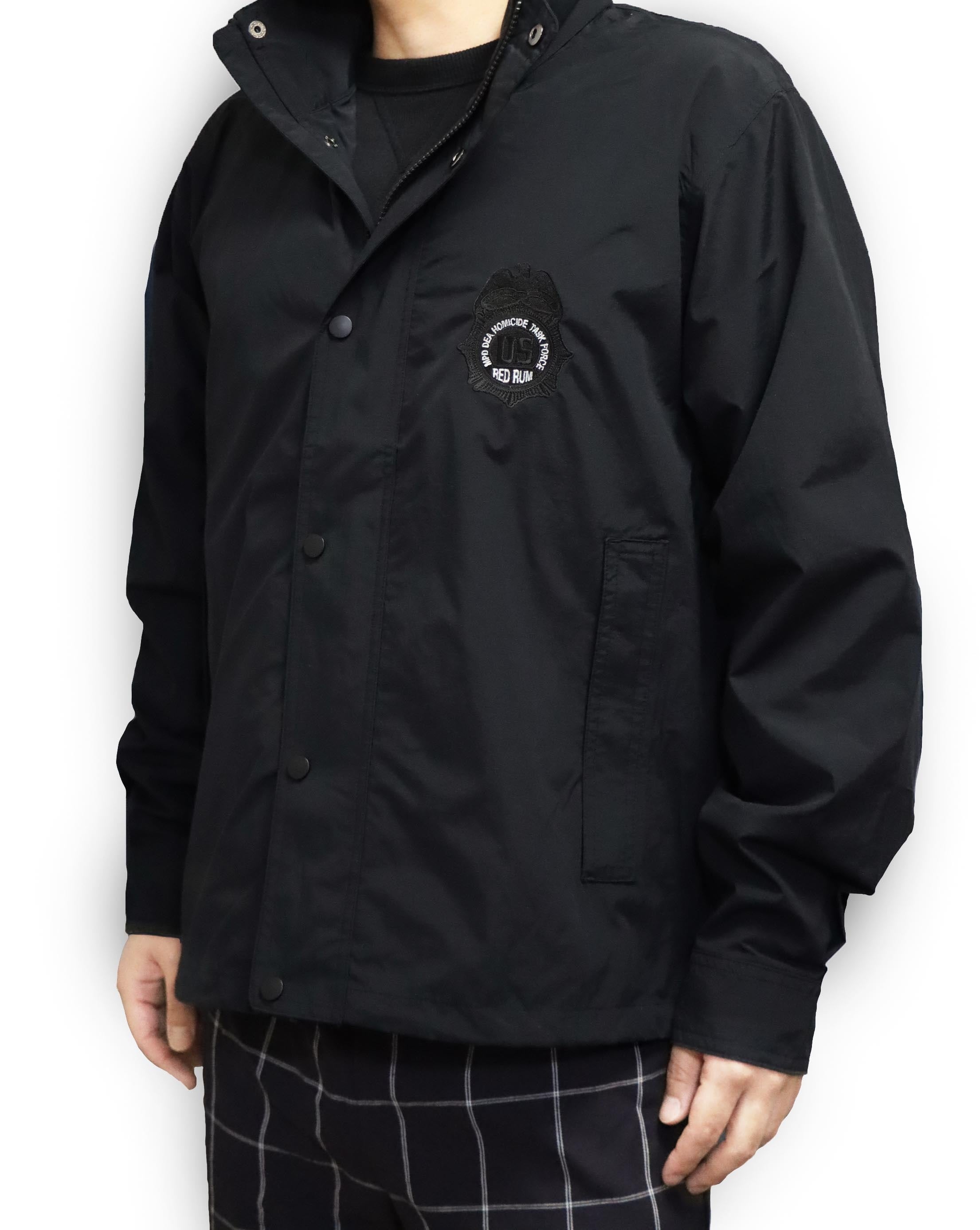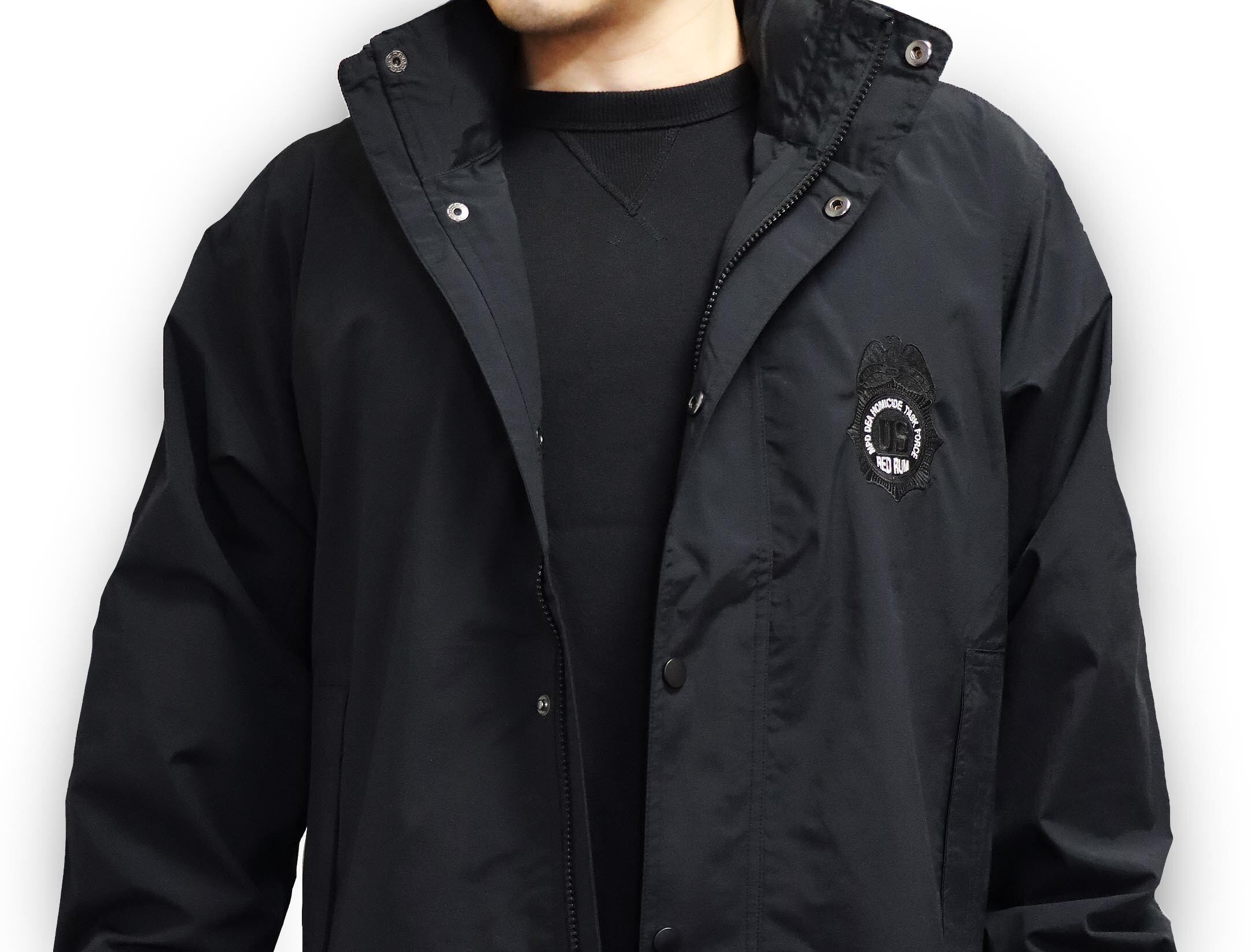 オペレーションREDRUMをモチーフに各所に刺繍を施したアウトドアジャケットです。ブラックカラーで統一したブラックアウトバージョンです。重ね着にも最適な薄手軽量タイプです。