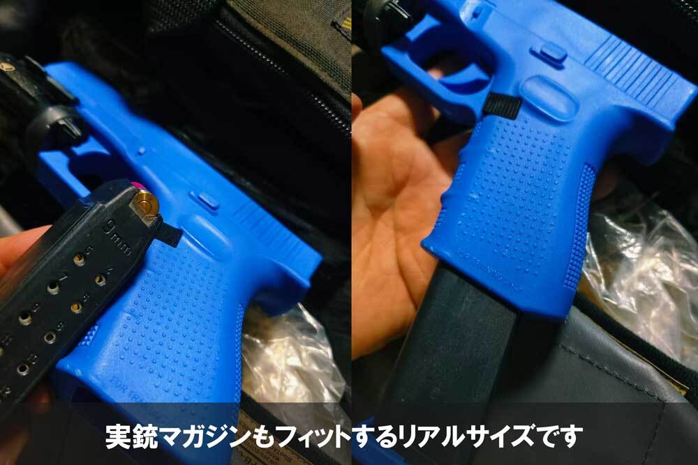 樹脂製のラバーガンです。マガジンの脱着機構が搭載されておりリロードのトレーニングに最適です。軍や法執行機関で訓練用機材として使用されています。本商品にはガン本体とマガジン1本が付属します。