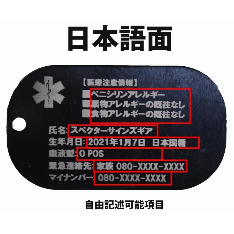 ■この製品は受注生産品です■災害や事故などの非常時に自分の情報を伝える認識票です。緊急連絡先に加え既往歴や体質、治療時の注意事項を記載することで適切な対処を行ってもらえる精度を高めます。携行に便利な小型サイズでパスケースなどと一緒に持ち運べます。