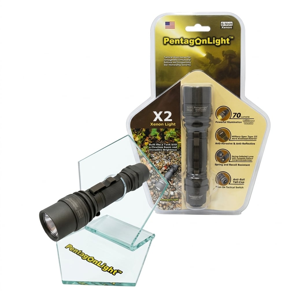 ペンタゴンライトは法執行機関、軍でも愛用される高性能ハンディライトです。キセノンバルブで煙やチリが舞う過酷な環境でもしっかりと光を通します。